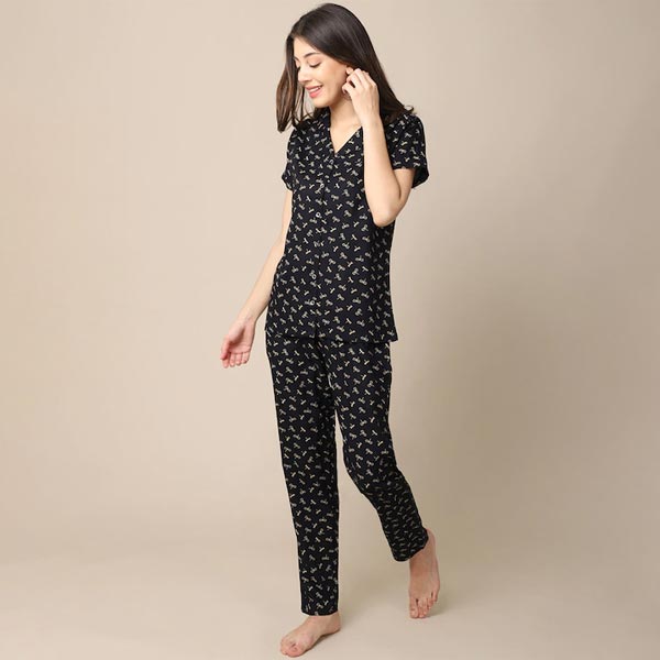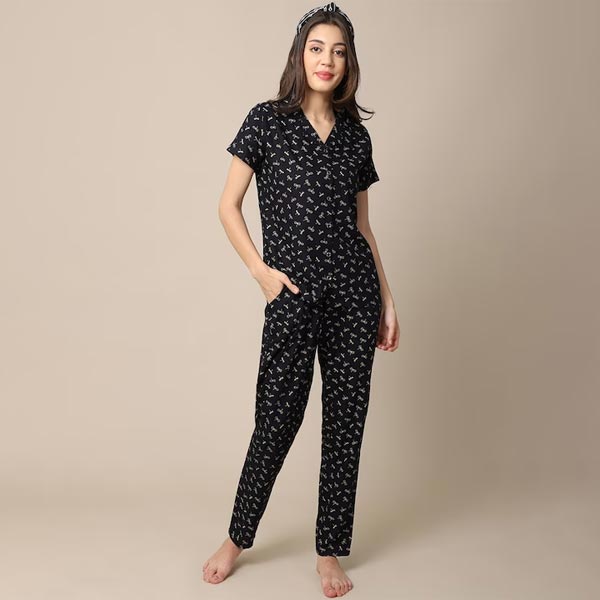Women Black Printed Night suit